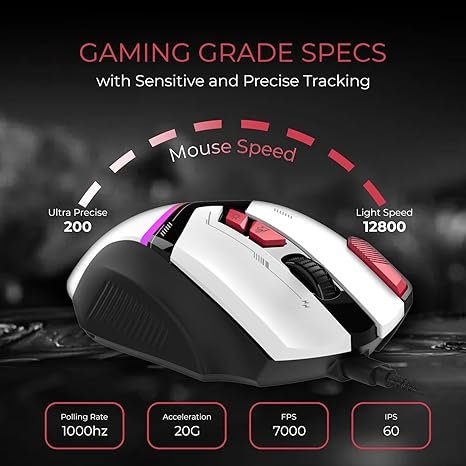 About this item Unleash your full gaming potential with the EvoFox Blaze Programmable RGB Gaming Mouse. Featuring adjustable DPI levels from 200 up to 12,800, 7000 FPS tracking, and a 1000Hz polling rate, it delivers pinpoint accuracy and lightning-fast response every time.